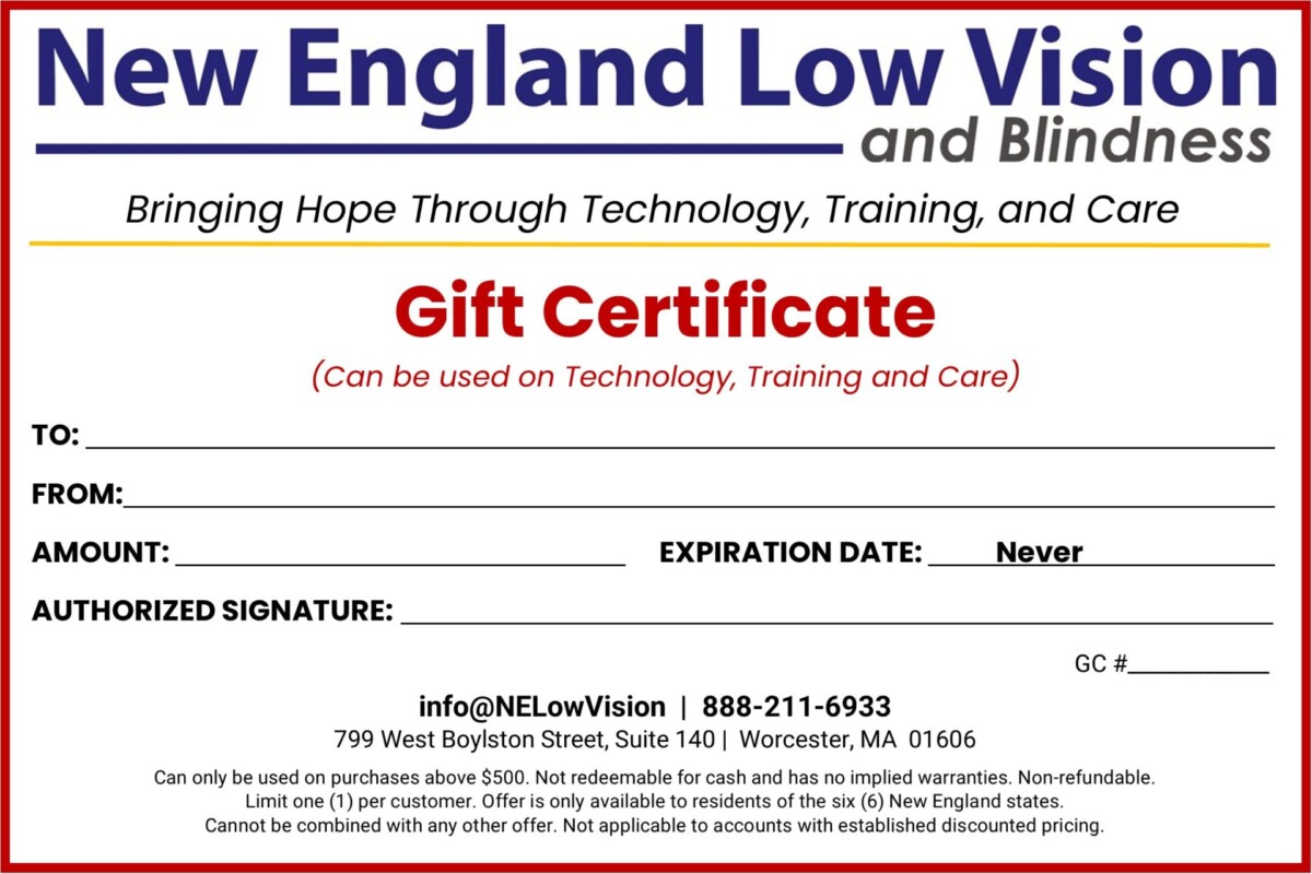 New England Low Vision & Blindness Gift Certificate